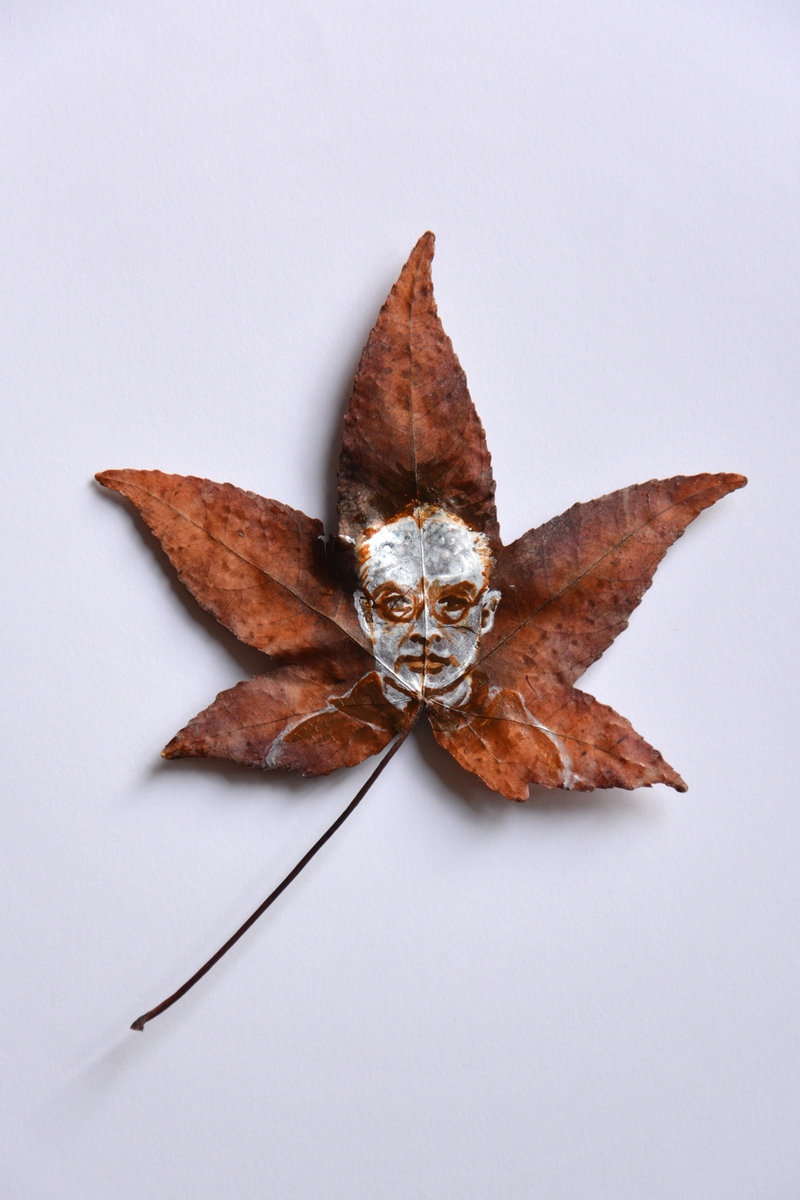 Am 29. Juli 1941 meldet sich der Franziskanerpater Maximilian Kolbe freiwillig, um für einen Familienvater den Hungertod zu sterben. Am 14. August 1941 wurde Kolbe in Auschwitz getötet. 10. Oktober 1982 Heiligsprechung von Maximilian Kolbe Gedenktag: 14. August Patronat: Maximilian Kolbe ist Schutzheiliger der Journalisten und Amateurfunker Portrait in weiß und Sepia auf gepresstem Baumblatt, Foto: EVA